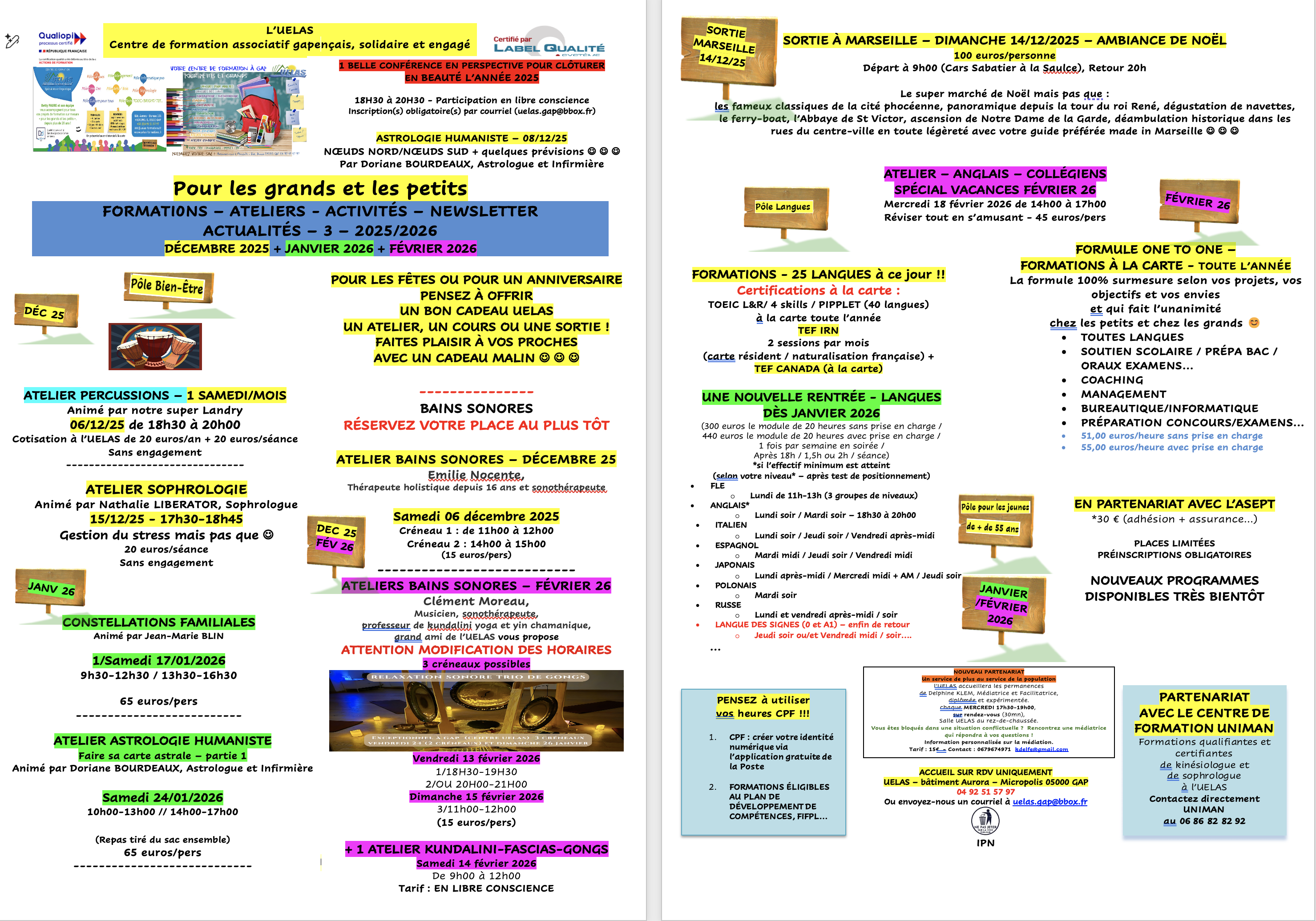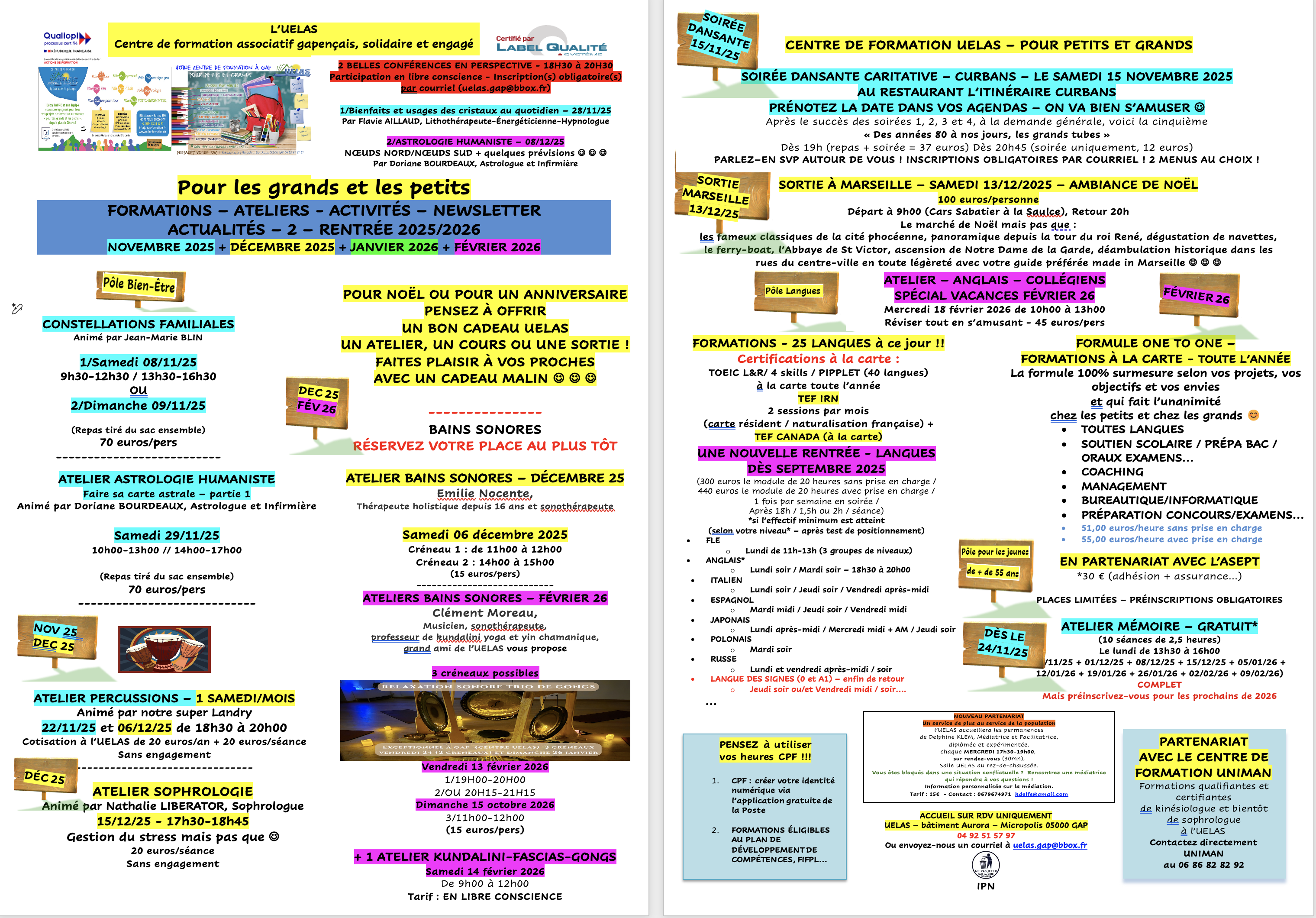 Programme varié, dynamique et chaleureux ; et oui, vous êtes à l'UELAS !!